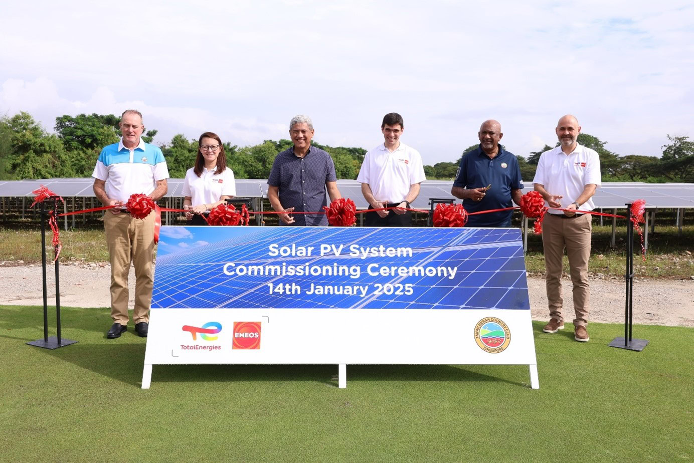 TMCC successfully completed its first ground-mounted solar photovoltaic (PV) project in Singapore, in partnership with TotalEnergies ENEOS. The 2.2 MWp solar system, consisting of over 3,750 modules, will generate around 2,660 MWh of renewable electricity annually, enough to power 600 four-room HDB flats for a year. This initiative will save costs and reduce the club’s carbon footprint by 1,030 tons of CO2 per year, equivalent to planting over 15,450 trees. TMCC is now Singapore’s first golf course to be largely powered by on-site solar energy, showcasing its commitment to sustainable energy transition. The successful installation of a 2.2 MWp ground-mounted solar PV system was celebrated with distinguished guests, including Christopher Chiu, TMCC Vice President, SK Ramadas Naidu, TMCC Convenor of the House & Recreation Committee, Antoine Delafargue, VP Solar Distributed Generation at TotalEnergies, and Alexandru Buzatu, Director of TotalEnergies ENEOS Renewables Distributed Generation Asia Pacific.