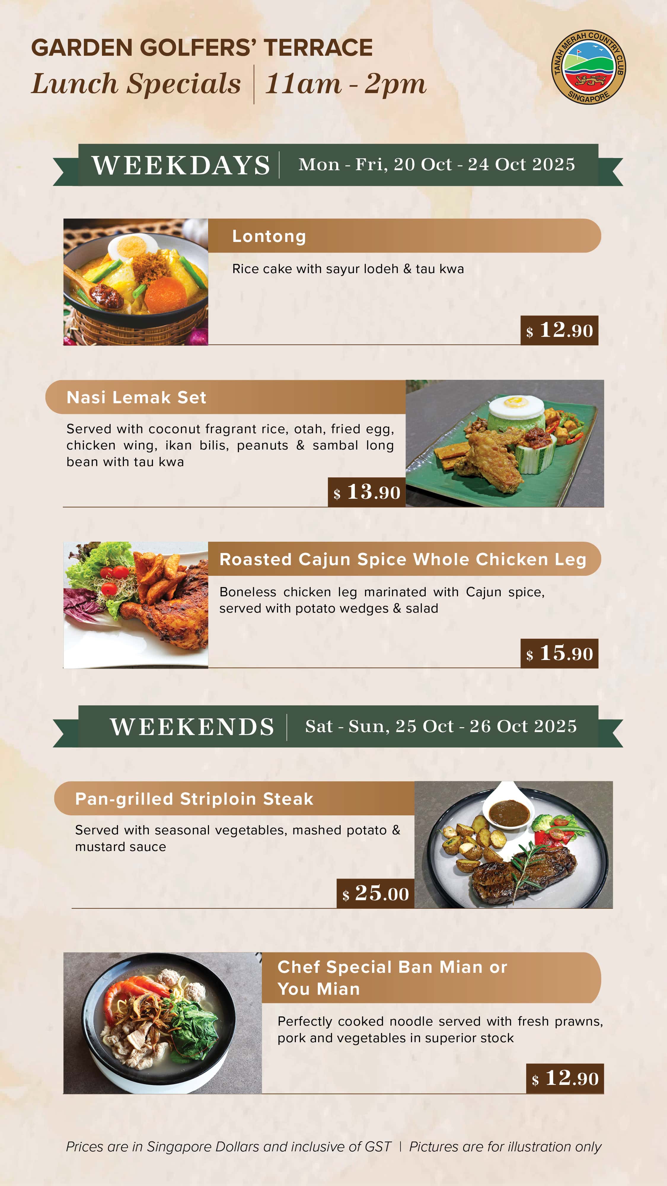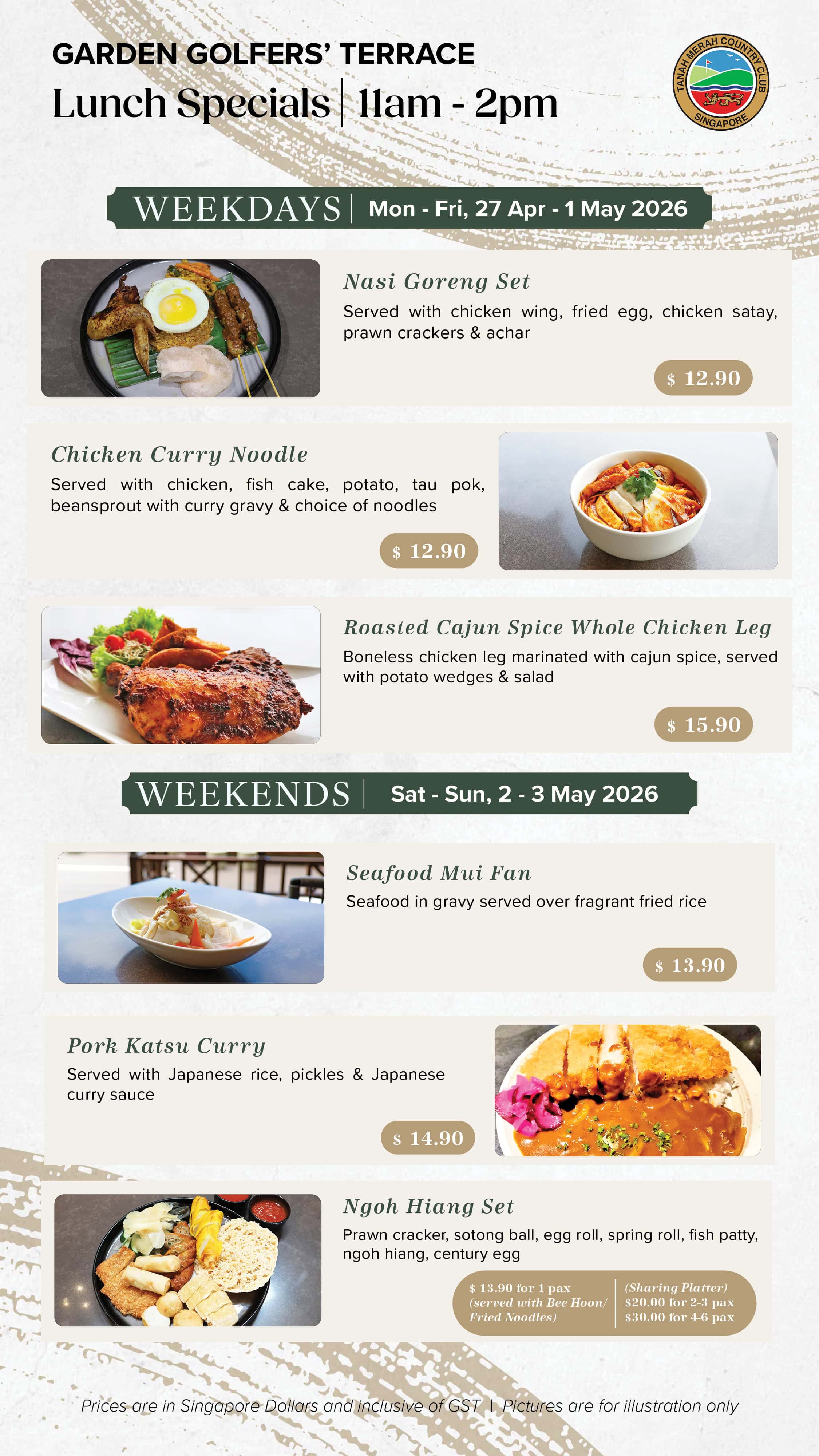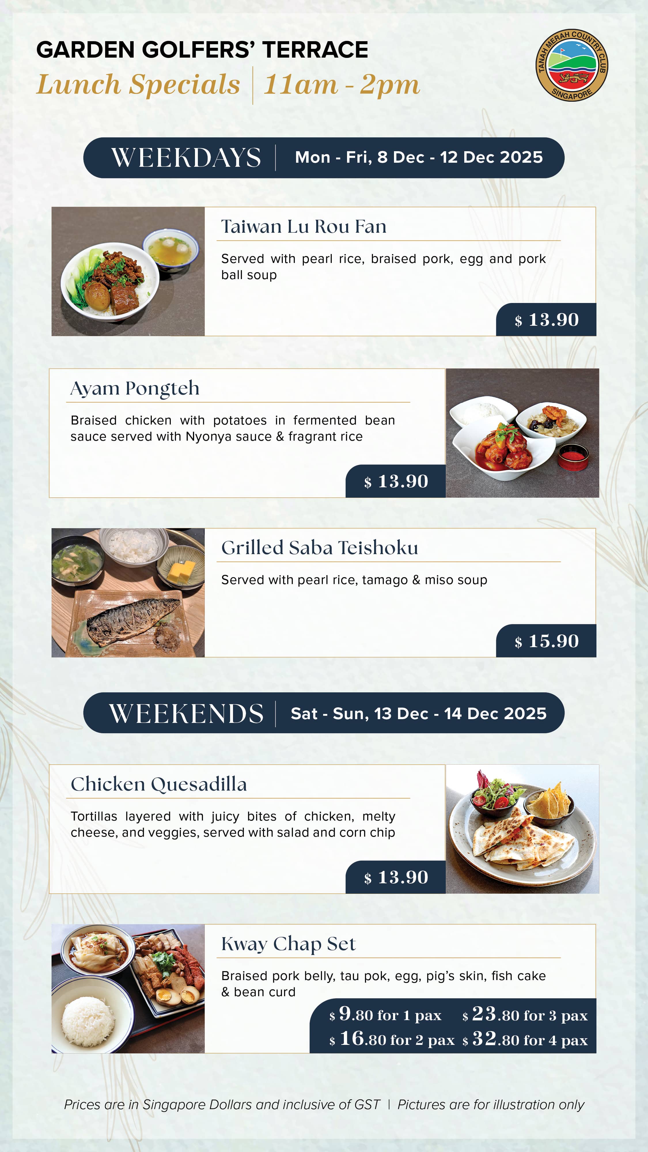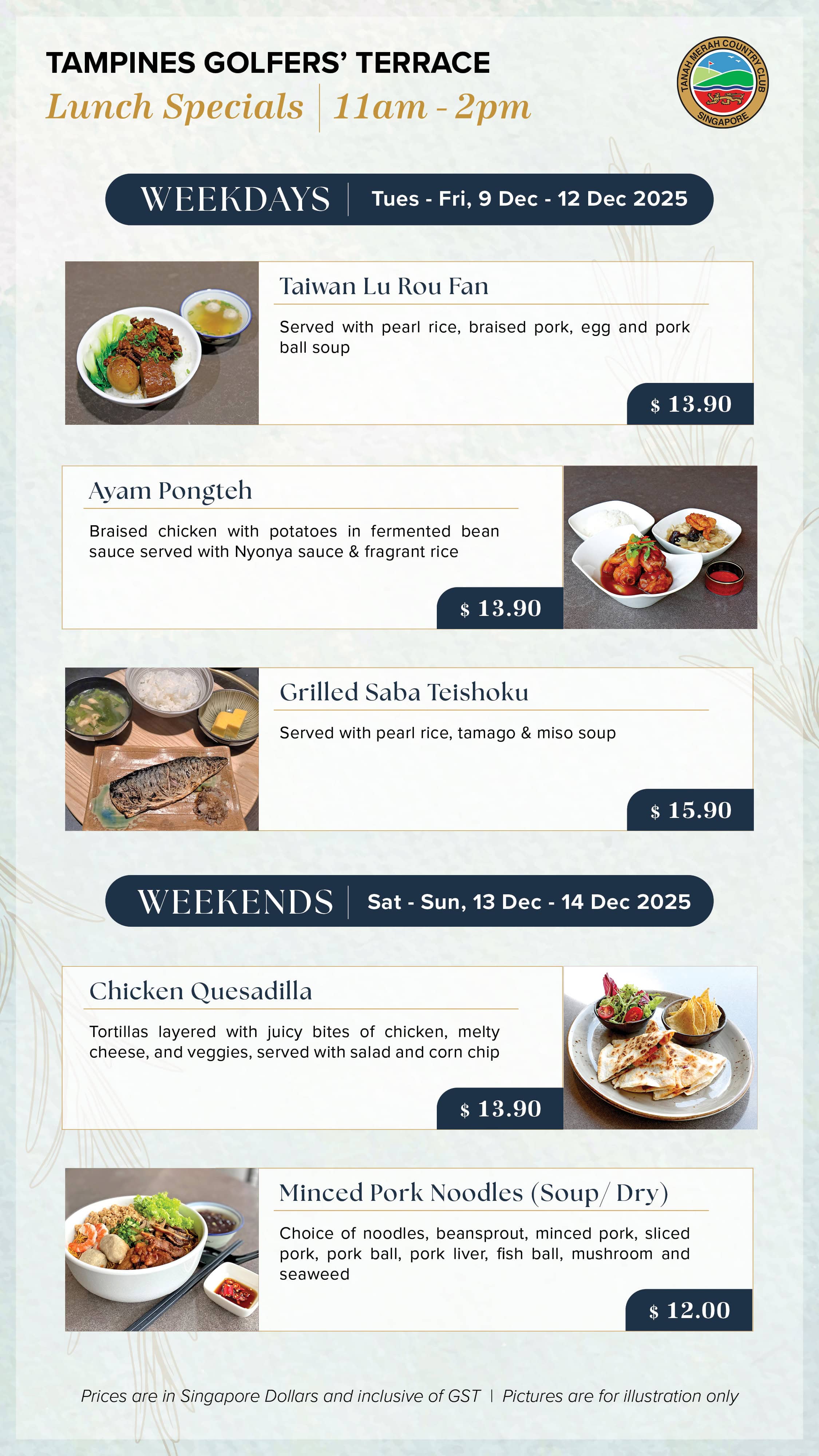 Embark on an exciting culinary experience at Tanah Merah Country Club amidst the lush greens and the Club’s rich heritage. Excite your palate with F&B promotion for everyone, every day.