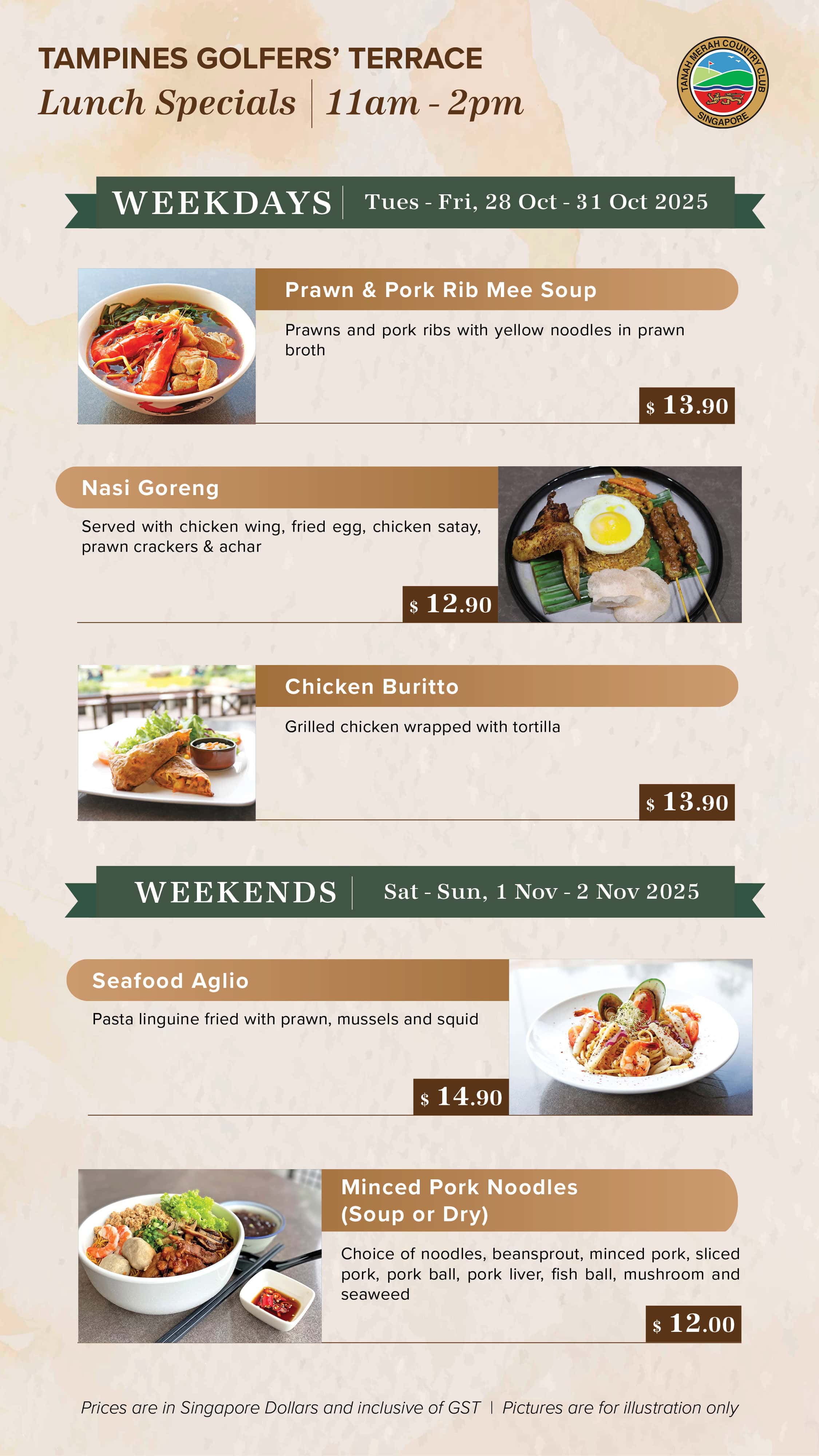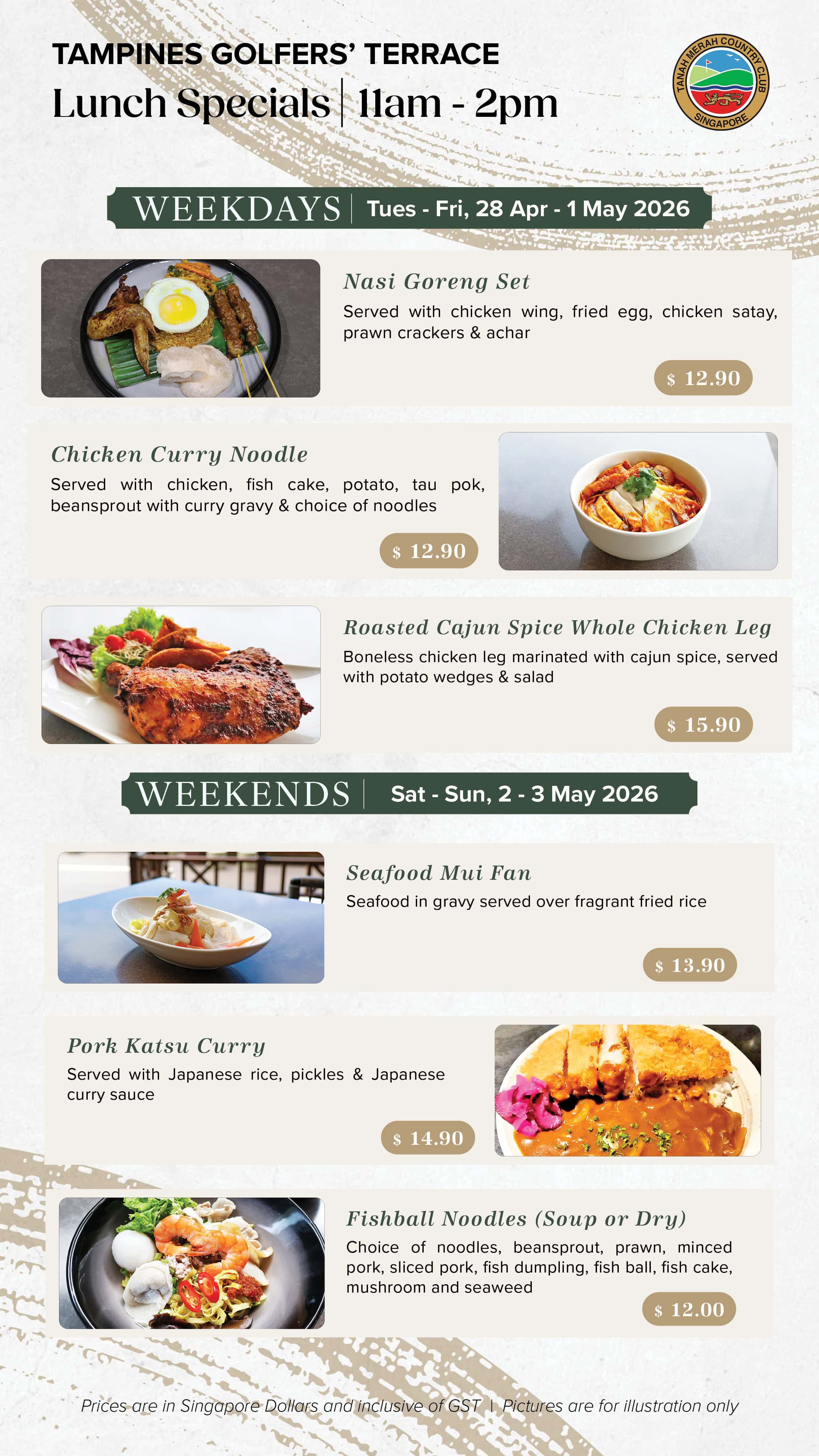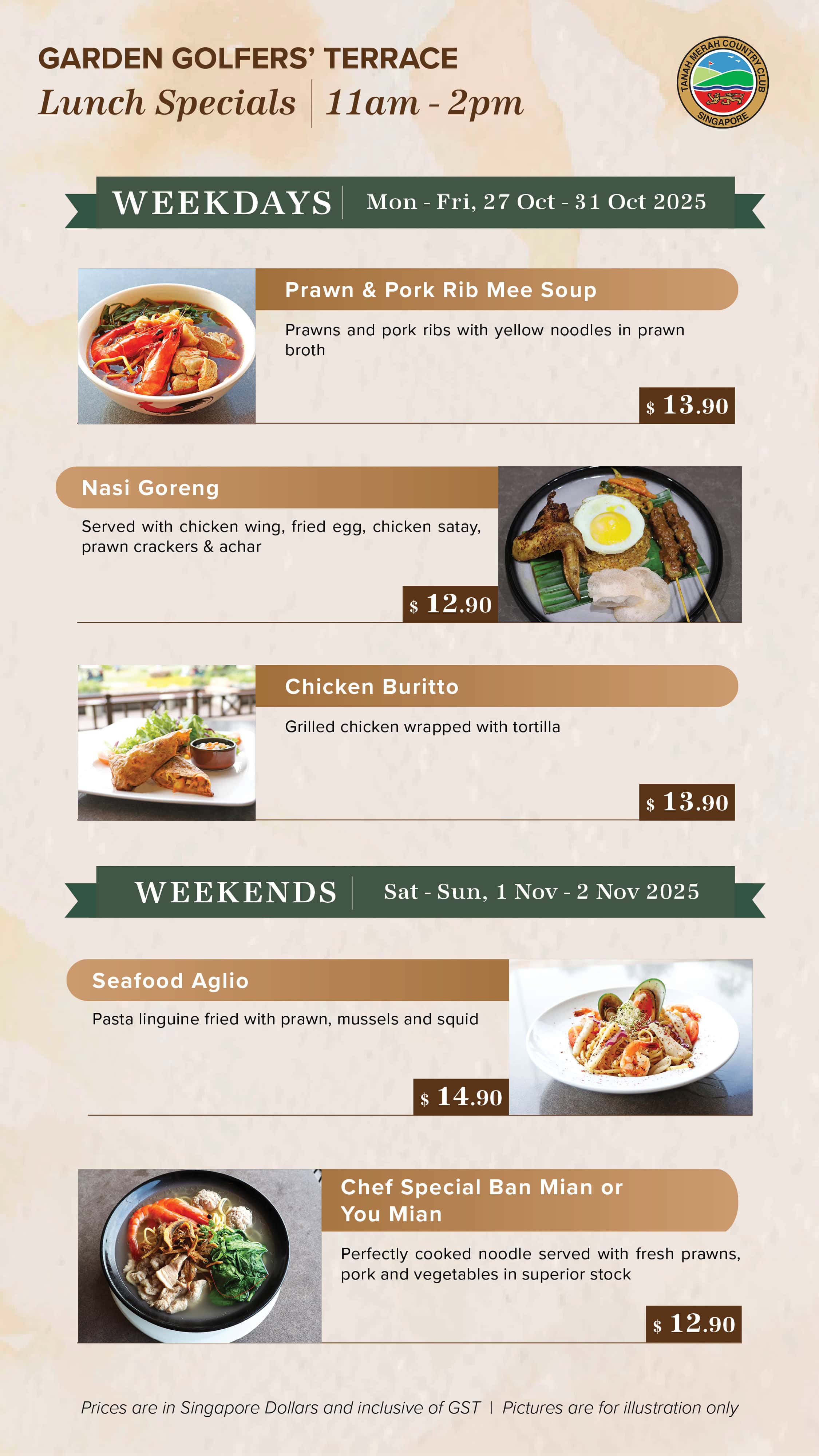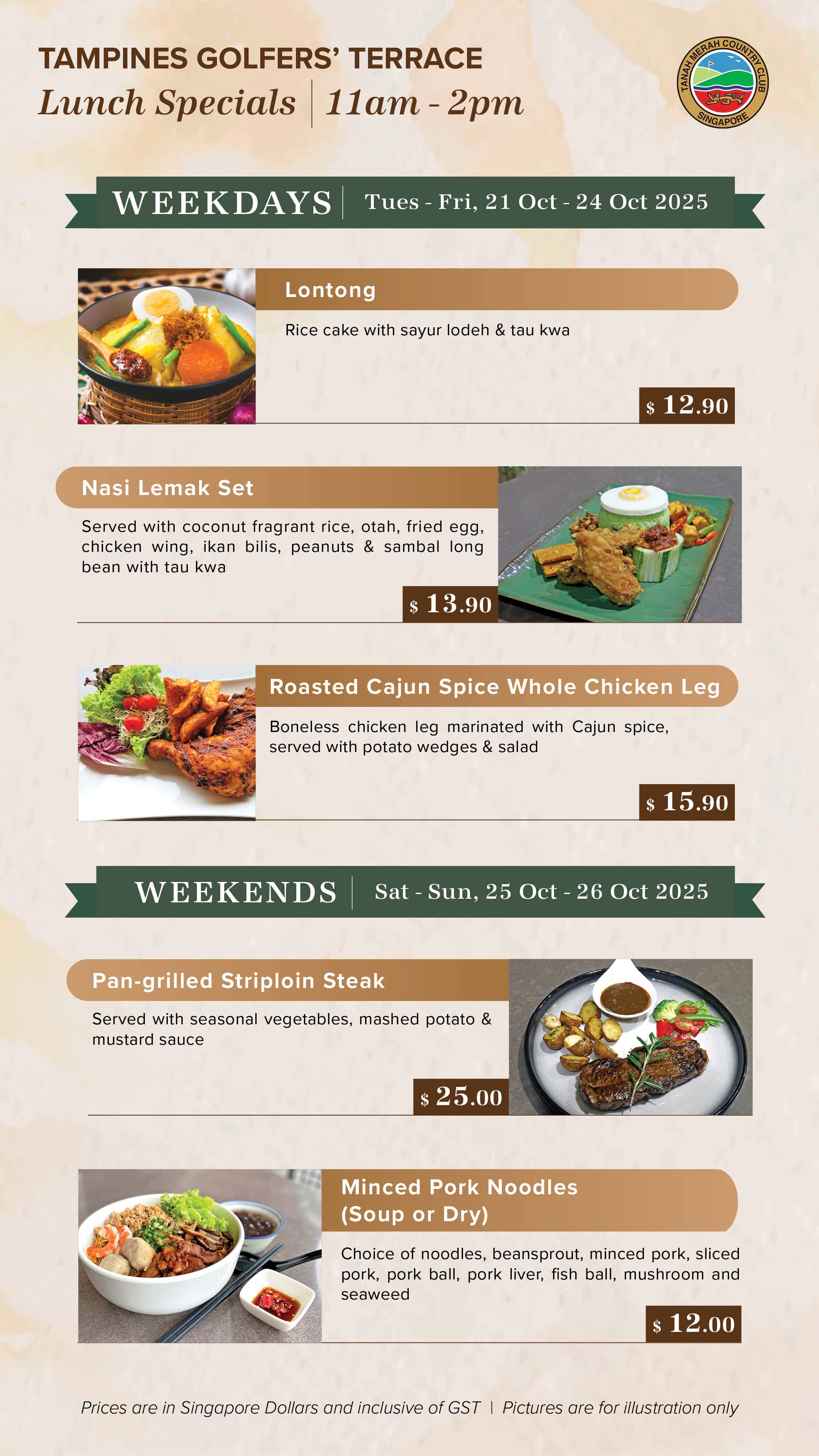 Embark on an exciting culinary experience at Tanah Merah Country Club amidst the lush greens and the Club’s rich heritage. Excite your palate with F&B promotion for everyone, every day.