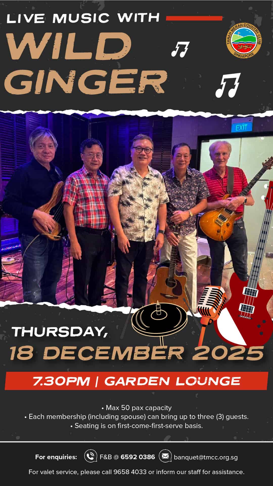 Entry fee of $21.80 (inclusive of prevailing GST) will be charged for Members’ guests visiting the Garden Lounge. This fee applies only on Friday and Saturday nights with live music performances and includes a standard glass from our selected beverage list.