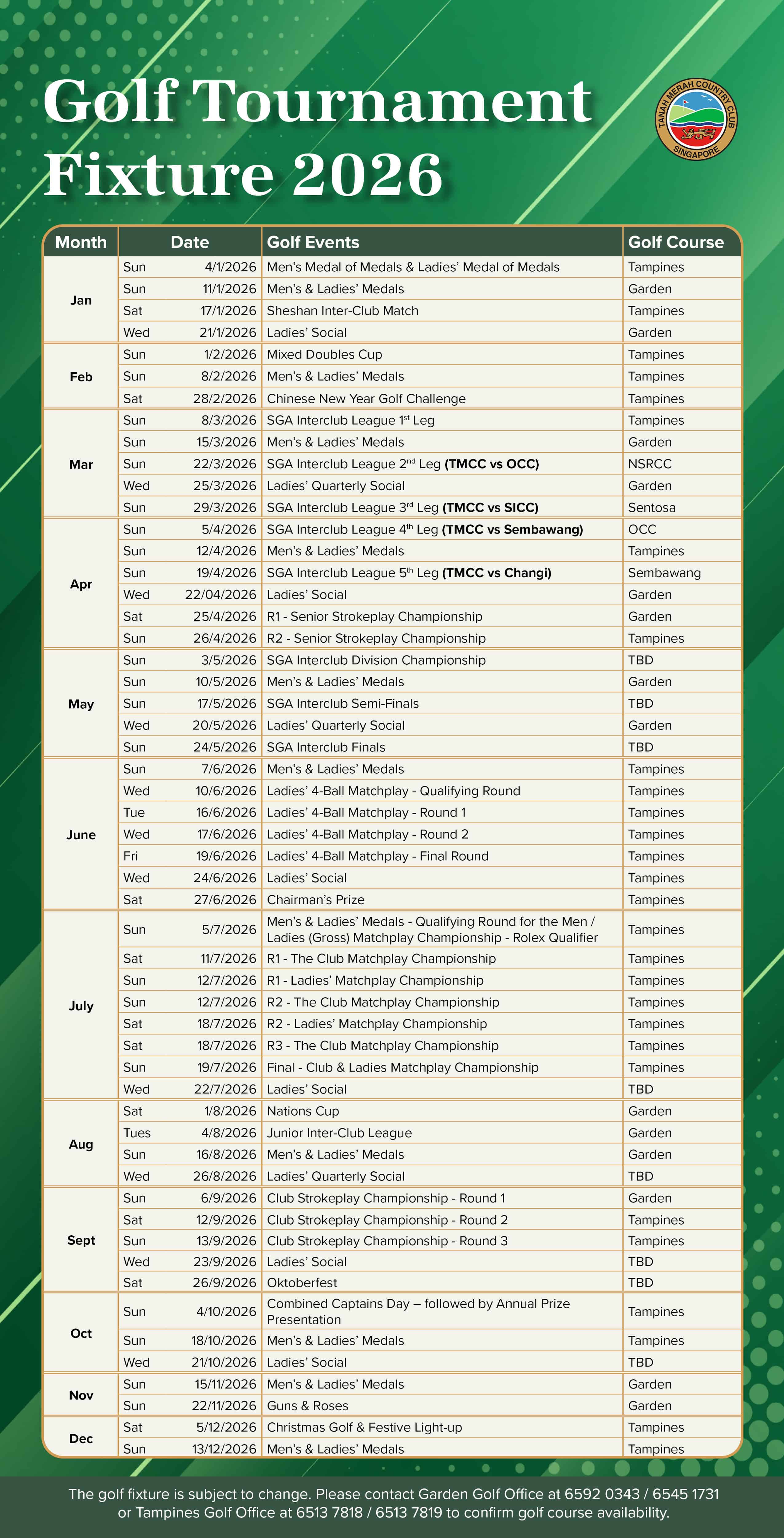 Golf Tournament Fixture 2026