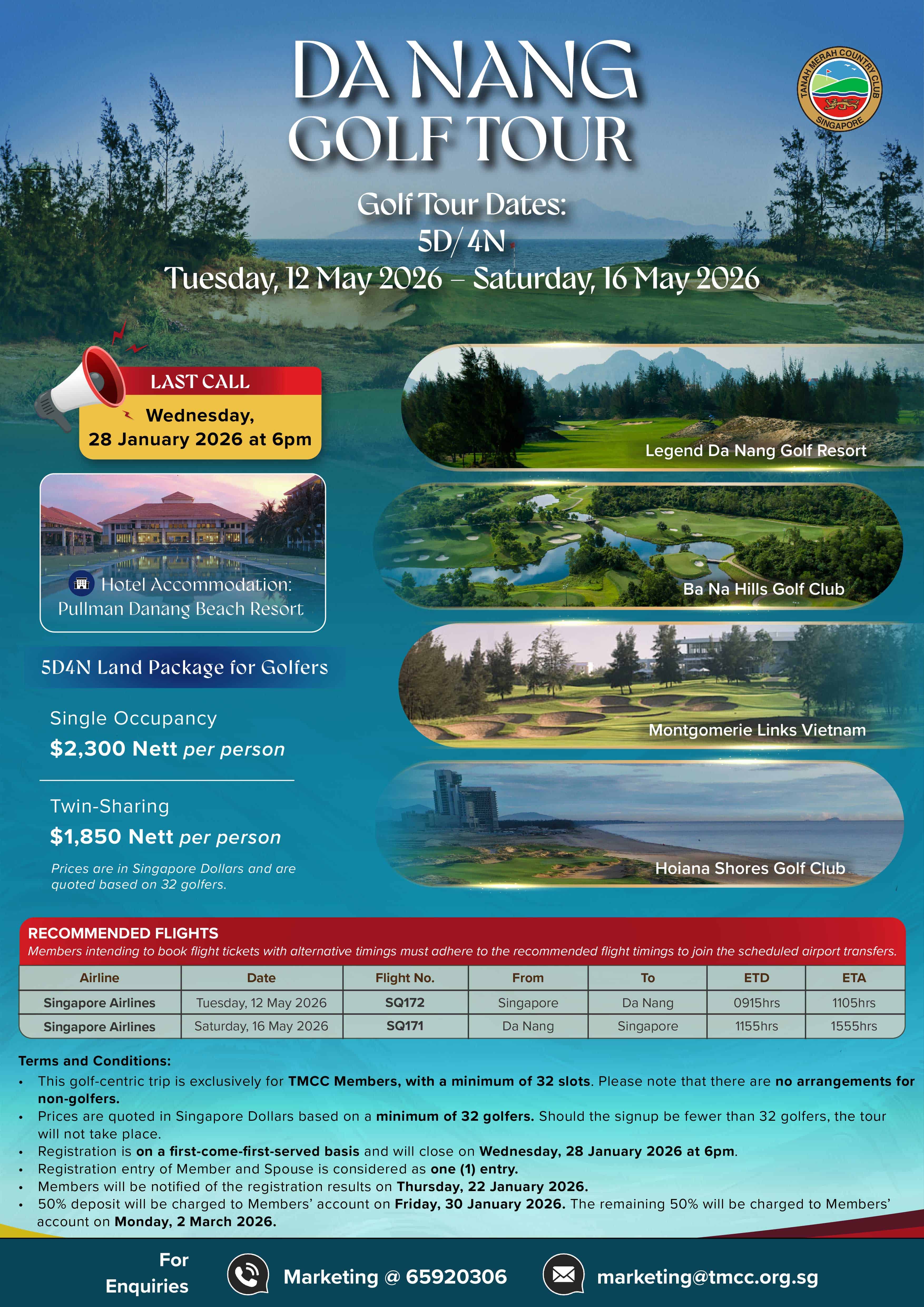 Prices are quoted in Singapore Dollars based on a minimum of 32 golfers.