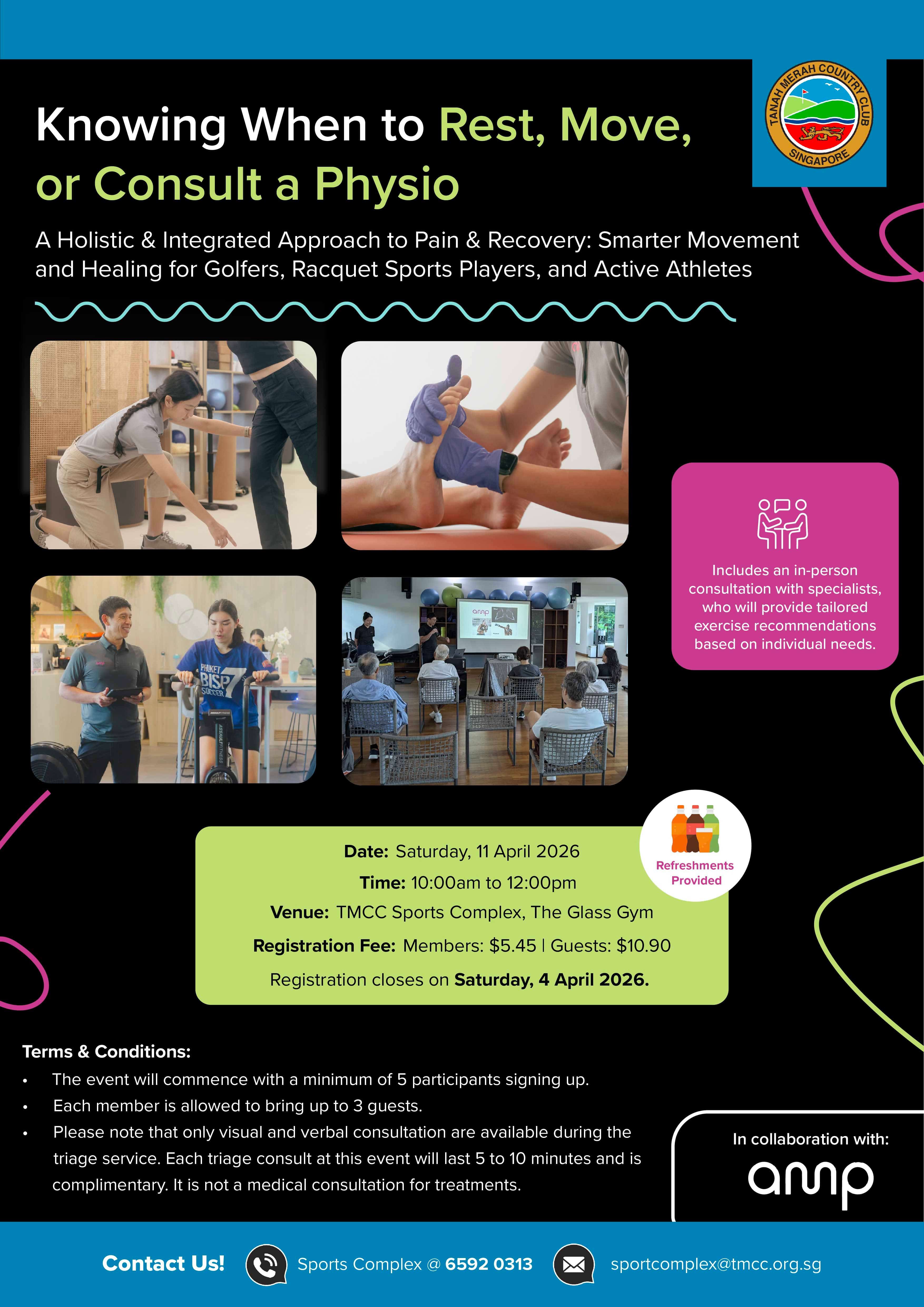 Join us for an informative and interactive workshop led by a Singapore-based musculoskeletal physiotherapist from AMP Lab, designed to help members understand their pain and take the right action early.